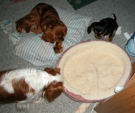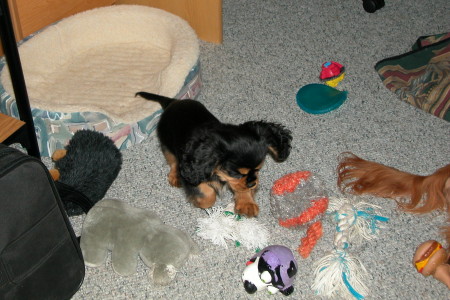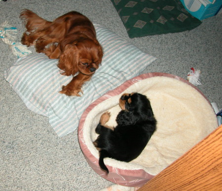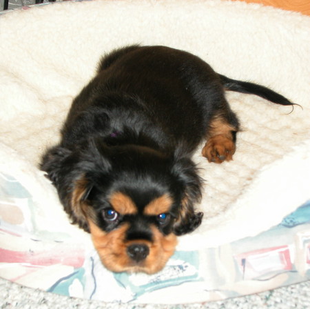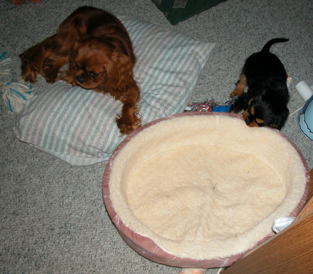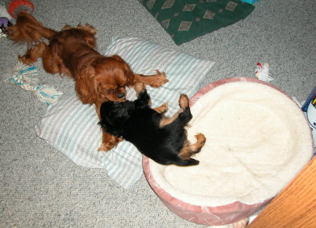 First, let me tell you a little about Kody. We got Kody when he was only 9 weeks old and it took him just two days to earn the nickname "Yipper" because he likes to talk and cry. Right now he bytes on everything just like Spencer says I did when I was little. He also likes to grab mummy's hair and pull. He thinks mummy's long hair is a built in tug toy. You can not tell in the pictures below but Kody has the cutest smile. I hope mummy gets some pictures of him smiling to post here. He is very quickly learning to go outside to the bathroom because I am helping mummy teach him. I tell mummy when Kody needs to go out. Kody is even learning very quickly how to sit before coming back inside. When mummy first brought him home I thought at first that he was a bear because I heard mummy call him a teddy bear. Spencer tried to tell me he was not a bear but I did not believe him - I knew what I heard mummy say. Spencer is still not sure if I know yet that Kody is not a bear. Spencer says I can be pretty silly sometimes - it's just his opinion. Anyway, Spencer says that since Kody and I have been playing some he thinks I should figure it out soon. Spencer even played with him once too, but he thinks he will mostly stay out of Kody's way until he learns not to byte so much. Then Kody will be lots of fun to play with! Remember to check back because mummy will be posting lots more pictures of Kody and some with Spencer and I too.