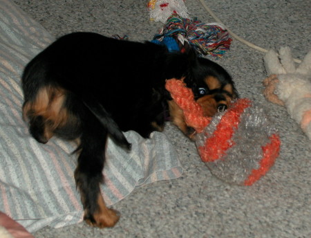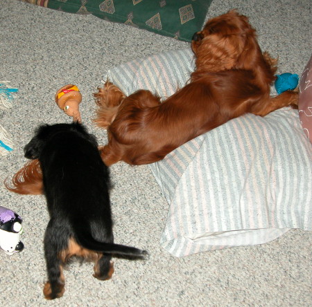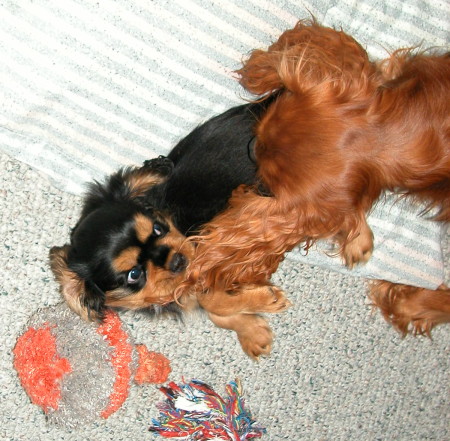 Kody - "Ha, I got your tail! That's what you get for taking my toy from me." (Spencer says this is payback for how I treated him when I was little, but I don't ever remember being this rotten to Spencer when I was little.)