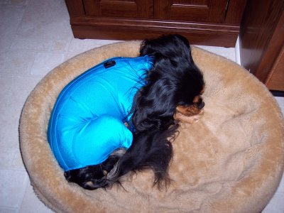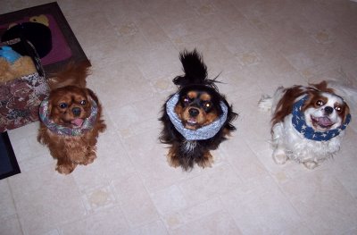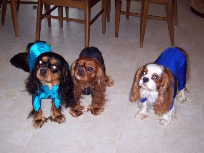 Here we are wearing our drying coats. They help keep us clean after our baths until we are all dry.