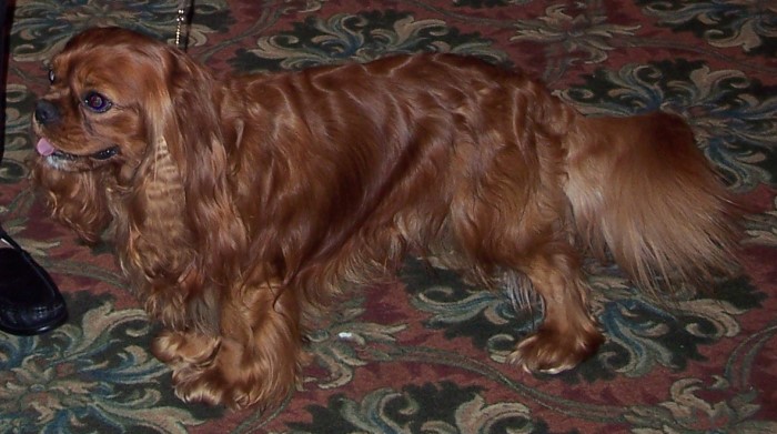 On the evening of October 11th, 2005, Randy (CH Portrait Eternal Flame) became a DADDY! He is now the proud father of three little fur-children. Firstborn was a handsome little Ruby boy just like his daddy. Second was a sweet little Black and tan boy, and third was a lovely little Ruby girl. All three are healthy and happy. Their mother is Sammi (Brookhaven Play It Again Sam) owned by Pat Brown of Cotillion Cavaliers.