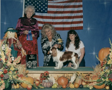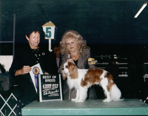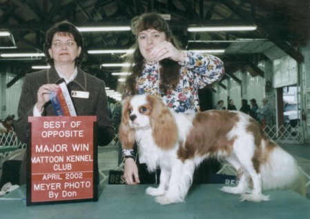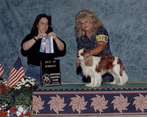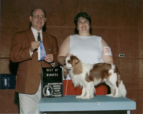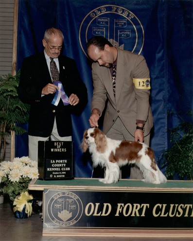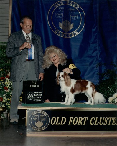 He beat enough other Cavaliers this time to win two points. This is a picture of Spencer with the judge and his agent Darla when he won his 12th and 13th points.